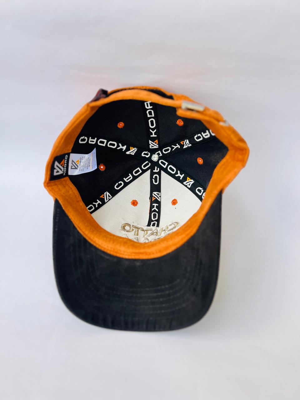 It is made of Ochre & Black suede fabric; which feels soft, smooth, light and tactile, making it look much more elegant than other ordinary fabrics. It has a soft, close fitting crown that follows the head’s shape and features a front visor or peak to block sun. The thin fibers have the ability to resist bending which makes them look elegant and natural.